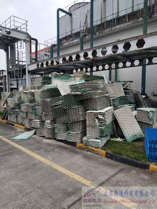 成都新津方形逆流冷卻塔1600T冷卻塔填料更換現場
